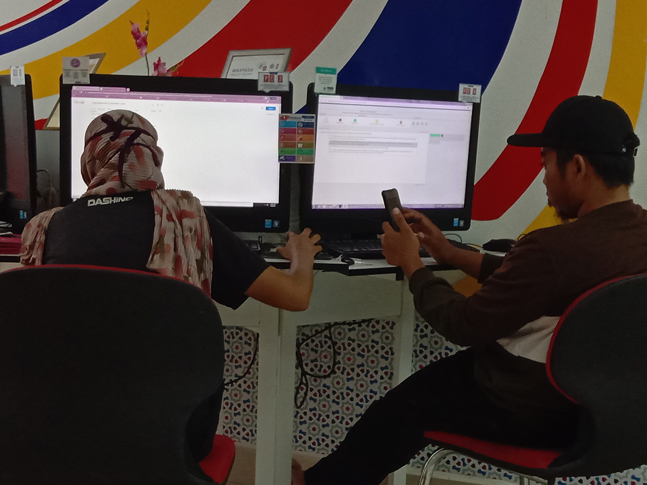 Petugas menunjukkan cara menggunakan Google Chrome untuk membuat carian maklumat, membuka whatsapp web, memuatturun dokumen dari whatsapp serta membuat cetakan dokumen tersebut. Selain itu, petugas turut membantu komuniti yang ingin menjawab soalan peperiksaan di website Spa.