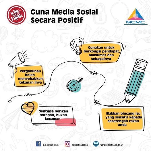 Guna media sosial secara beretika dan positif. Budi bahasa budaya kita. Jangan lupa LIKE dan SHARE. Jom @klikdenganbijak ! #etikaAlamSiber #klikdenganbijak #malaysiaictvolunteer #KKMM #MCMC #KDB #fasihdigital #WSIS