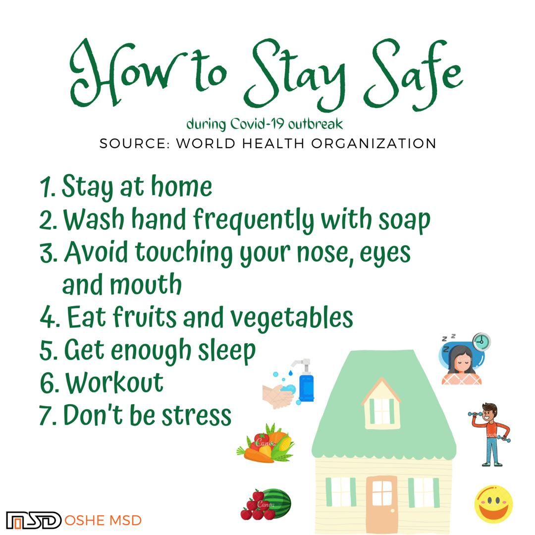 Sempena Perintah Kawalan Pergerakan, World Health Organizatin (WHO) menyarankan beberapa langkah berikut untuk mengelakkan Virus Covid-19 terus merebak kepada semua individu yang ditemui.