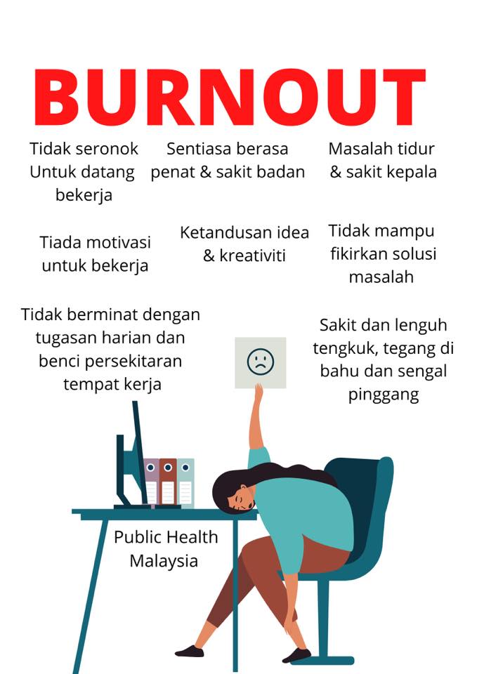 BURNOUT boleh memberi kesan kepada masalah fizikal dan mental.