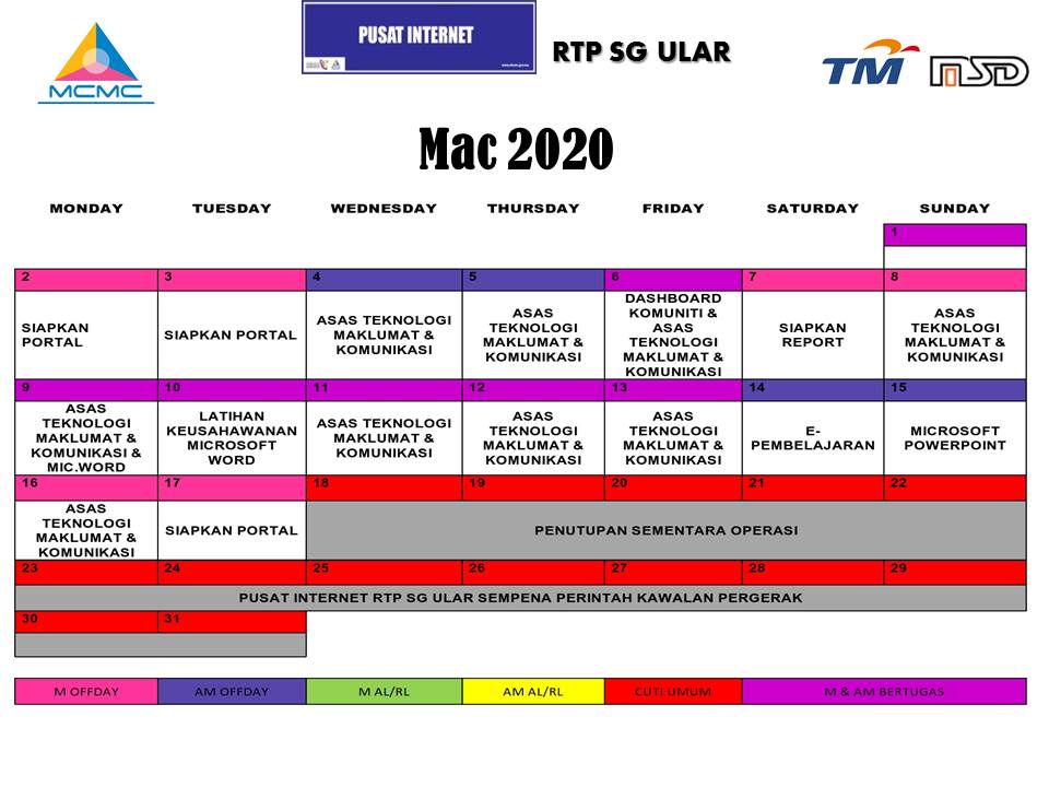 JADUAL AKTIVITI PI RTP SG ULAR MAC 2020