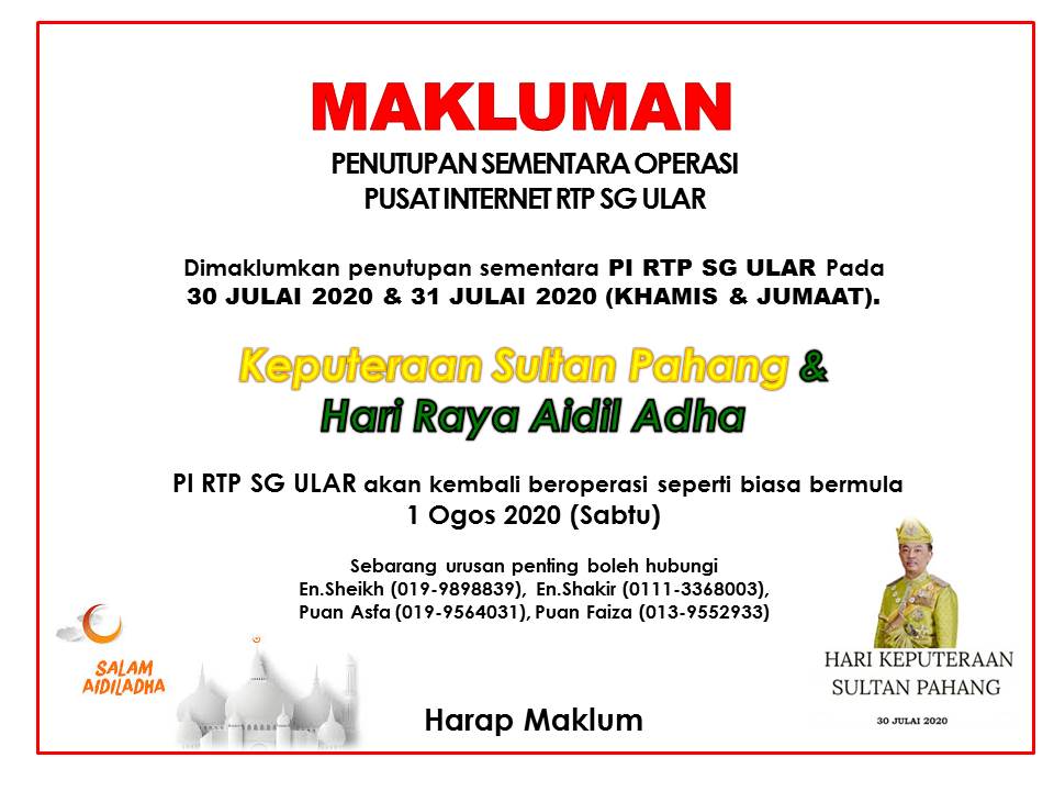 NOTIS PENUTUPAN PI RTP SG ULAR SEMPENA CUTI UMUM