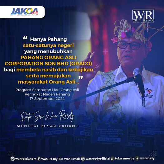 Pahang adalah satu-satunya negeri di Malaysia yang mewujudkan badan berkanun khas untuk membantu Orang Asli. ORACO atau Pahang Orang Asli Corporation menjadi ‘One Stop Centre’ bagi menjadikan usaha memperkasa masyarakat Orang Asli lebih komprehensif.