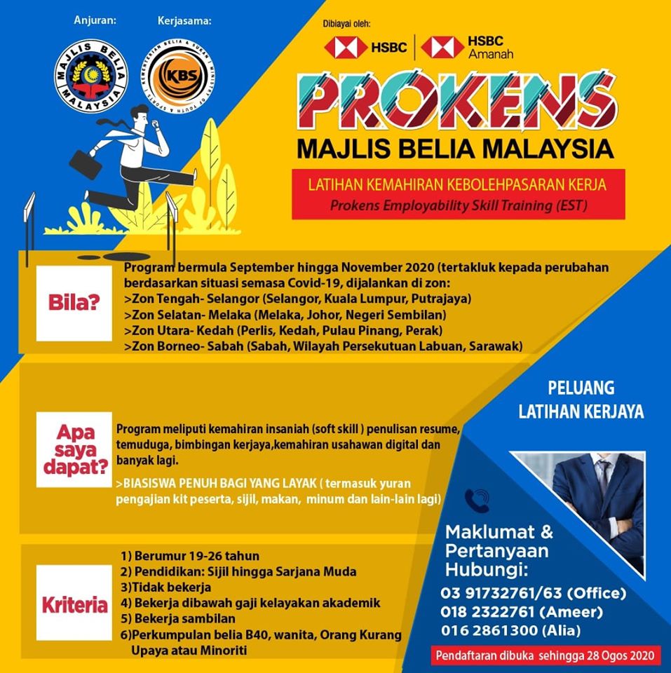 Latihan ini merupakan inisiatif Majlis Belia Malaysia (MBM) dengan kerjasama HSBC Bank Malaysia bagi memberi peluang pekerjaan kepada anak muda yang belum mendapat pekerjaan. Program ini meliputi kemahiran insaniah (soft skill) penulisan resume dan temuduga, bimbingan kerjaya, kemahiran ushawan digital dan banyak lagi.?️♂️???