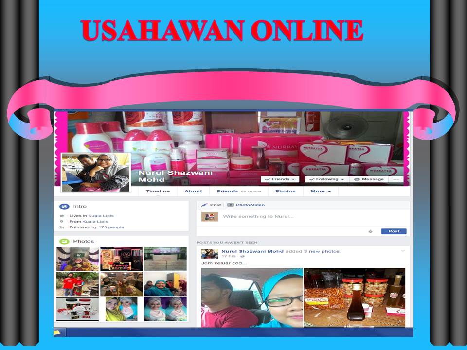 1. Puan Nurul Shazwani merupakan usahawan online secara sepenuh masa. Berikut merupakan media sosial yang digunakan oleh beliau untuk memasarkan produknya.